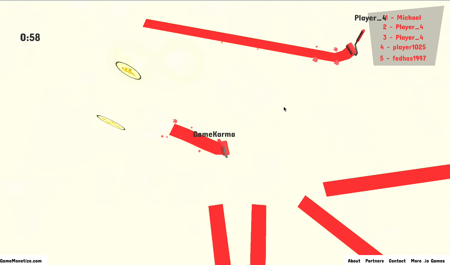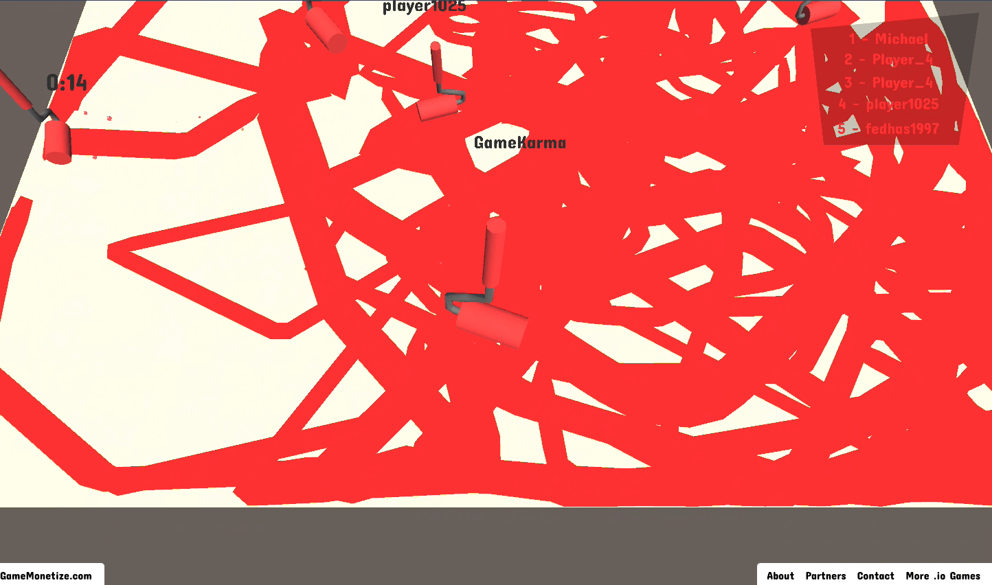 Como observado acima, você não pode desativar ou eliminar os oponentes. Todos os jogadores têm condições absolutamente iguais no início da rodada. Para invadir os líderes, procure por bônus temporários no mapa que lhe proporcionará a velocidade adicional de movimento ou uma superfície expandida do rolo de pintura. Em outras palavras, quaisquer melhorias em sua ferramenta o aproximarão significativamente da vitória.