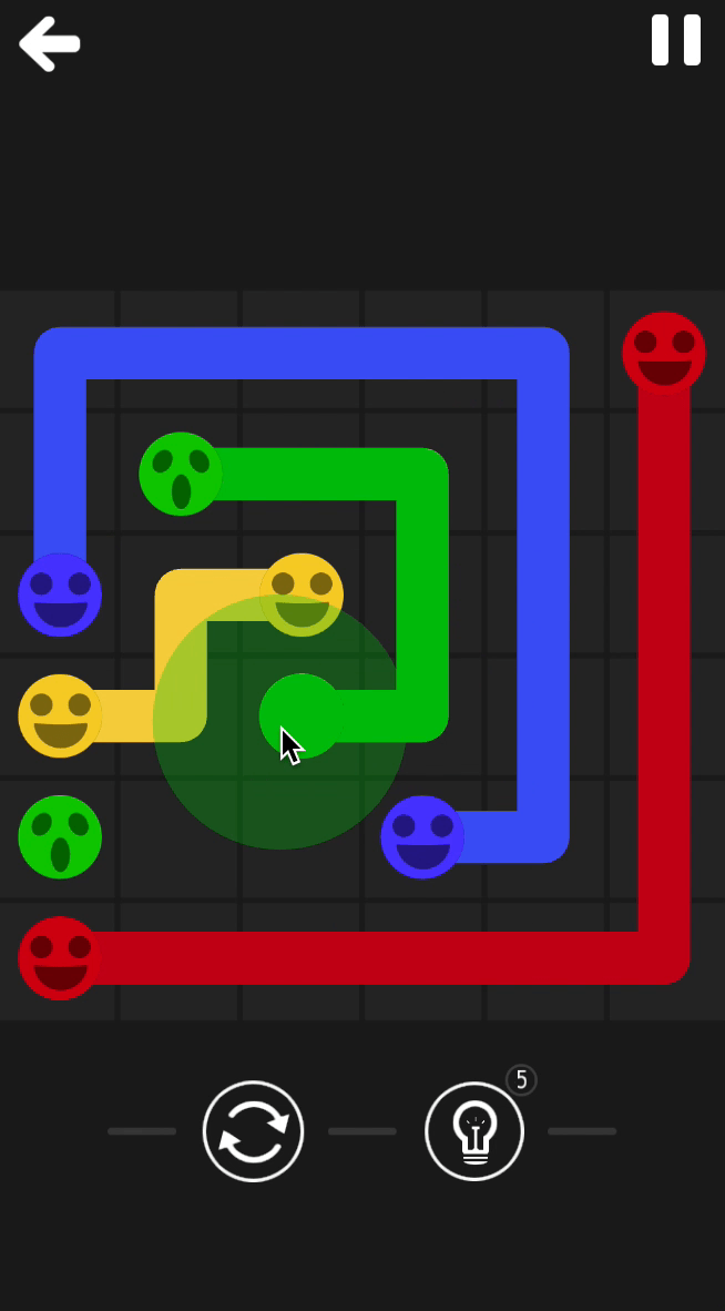 O nível é considerado passado quando se pode conectar todos os mesmos tipos de emoticons uns com os outros. Com cada novo nível, a tarefa é dinamicamente complicada e o jogo se torna mais interessante. Não há limites de tempo para os quais você precise completar a tarefa.