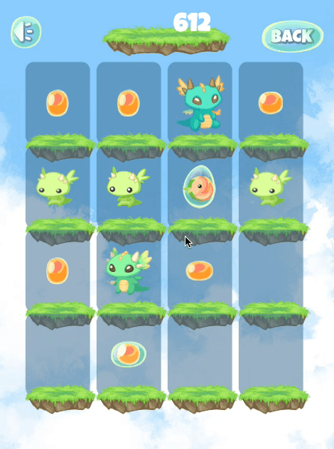 El principio del juego consiste en combinar dos componentes idénticos en uno solo, que se hará más grande en tamaño que los dos anteriores. En el caso del juego original 2048, hablamos de números primos, y en el caso de 2048 Dragon Island, hablamos de dragones. En este caso, tendrás que unir dragones entre sí, empezando por las células más sencillas y terminando con duras criaturas que escupen fuego y que asombrarán por su poder y belleza. Como en las versiones clásicas del juego, perderás cuando no te queden opciones para hacer un movimiento.