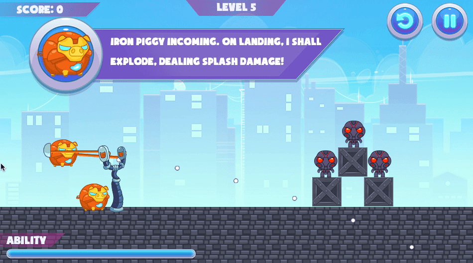 Le jeu a un schéma de contrôle similaire à celui d'une application mobile. Cependant, au lieu de l'habituel balayage avec les doigts, vous utiliserez la souris. Dirigez le curseur de la souris vers le personnage, maintenez le bouton gauche de la souris enfoncé et déplacez la souris dans la direction opposée à la direction souhaitée. Plus vous déplacez le curseur, plus le tir sera puissant. Le système vous invite à calculer la trajectoire de vol à l'aide des lignes pointillées à l'écran. Il vous sera ainsi beaucoup plus facile de planifier vos actions sur la carte.