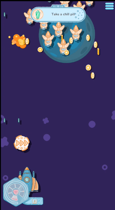 Les commandes du jeu sont très simples et se résument à des flèches de navigation, dont chacune vous permettra de diriger votre vaisseau dans une certaine direction. Essayez d'éviter les collisions et de livrer des personnes à une destination donnée sans vous écraser.