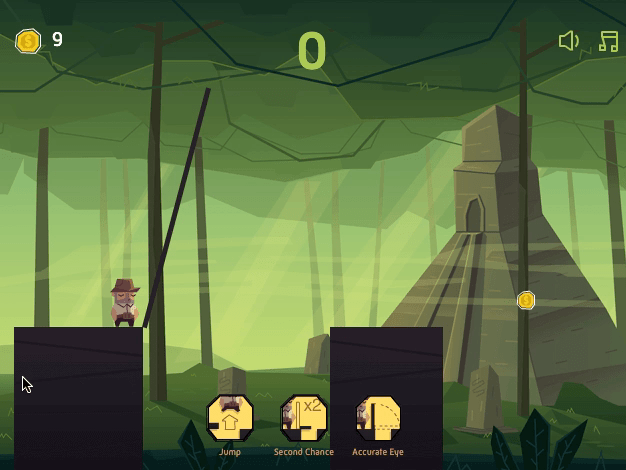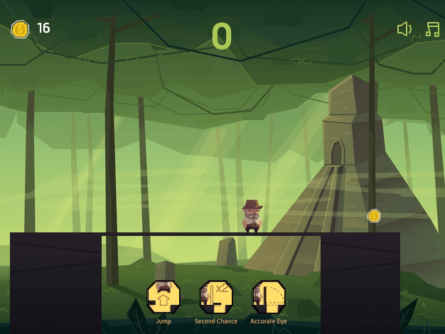 La difficulté réside dans le fait que vous devrez calculer correctement la longueur du pont du premier coup. Si vous vous trompez un tant soit peu dans vos calculs, votre personnage tombera soit sur le rocher qu'il doit atteindre, soit après. Et tout irait bien, mais la longueur du pont ne se mesure que visuellement puisqu'il est construit en hauteur et qu'à la fin du processus de construction, il tombe sur la falaise. Ceux-ci. vous ne pouvez pas comparer la longueur de l'objet en construction avec la distance entre les rochers. Toute la procédure se fait "à l'œil" et la durée de la construction doit être basée sur la perception intuitive.