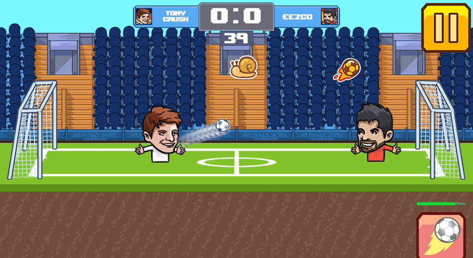 You control a character who opposes the enemy. You play on a regular field and your main task is to score more goals than your opponent can do. Naturally, according to the classic rules of football - all the action will take place within the time allotted for the match. The one who, within the allotted time, can score more, wins. From time to time, various bonuses will appear on the field that can significantly help you or slow down your opponent. Such components will always appear over the heads of the characters and you should learn how to hit them with a ball to activate.