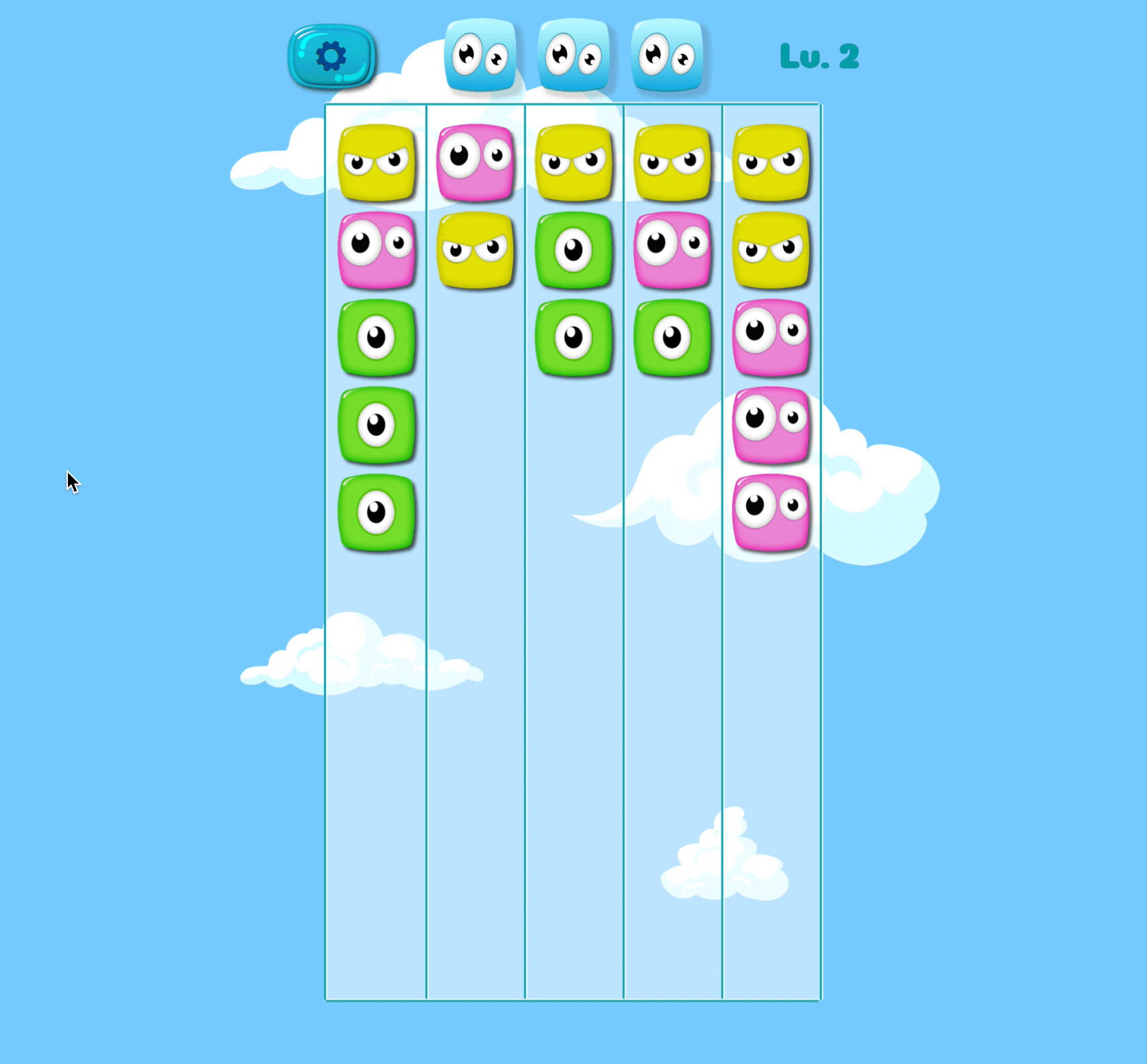 The whole gameplay takes place on the field, which is filled with multi-colored figures. Your main goal is to collect three pieces of the same color for each move. At the same time, it is extremely critical to take into account the fact that if you choose the wrong row or a figure of the wrong color, then the level will be considered failed. The main goal of the game is to clear all the figures and go to the next level. Tasks from level to level dynamically become more complex.