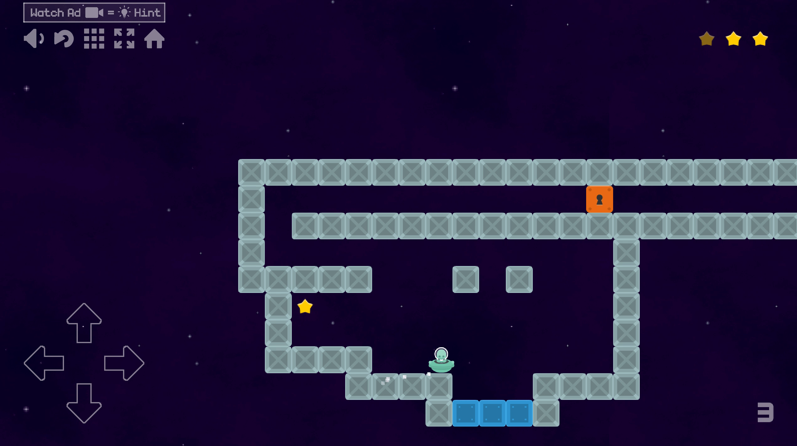 The game takes place in static locations, which are complex impromptu labyrinths. Your task is to collect all the stars on the map, after which a key will appear on the location. Picking up the key you will open the door leading from the current level to the next.