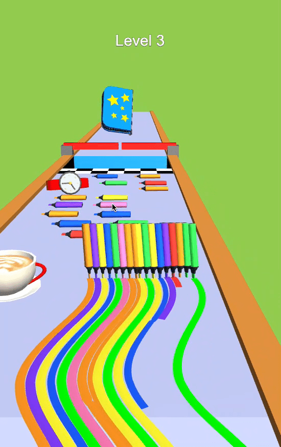 As soon as you touch the other pens, they are all added to your arsenal and you will follow the table with a huge armful of brightly colored writing materials. However, it is worth remembering that any contact with foreign objects will knock out of your arsenal those pens that hit an obstacle or fall off the table. The game ends when there are no pens left in your armful.