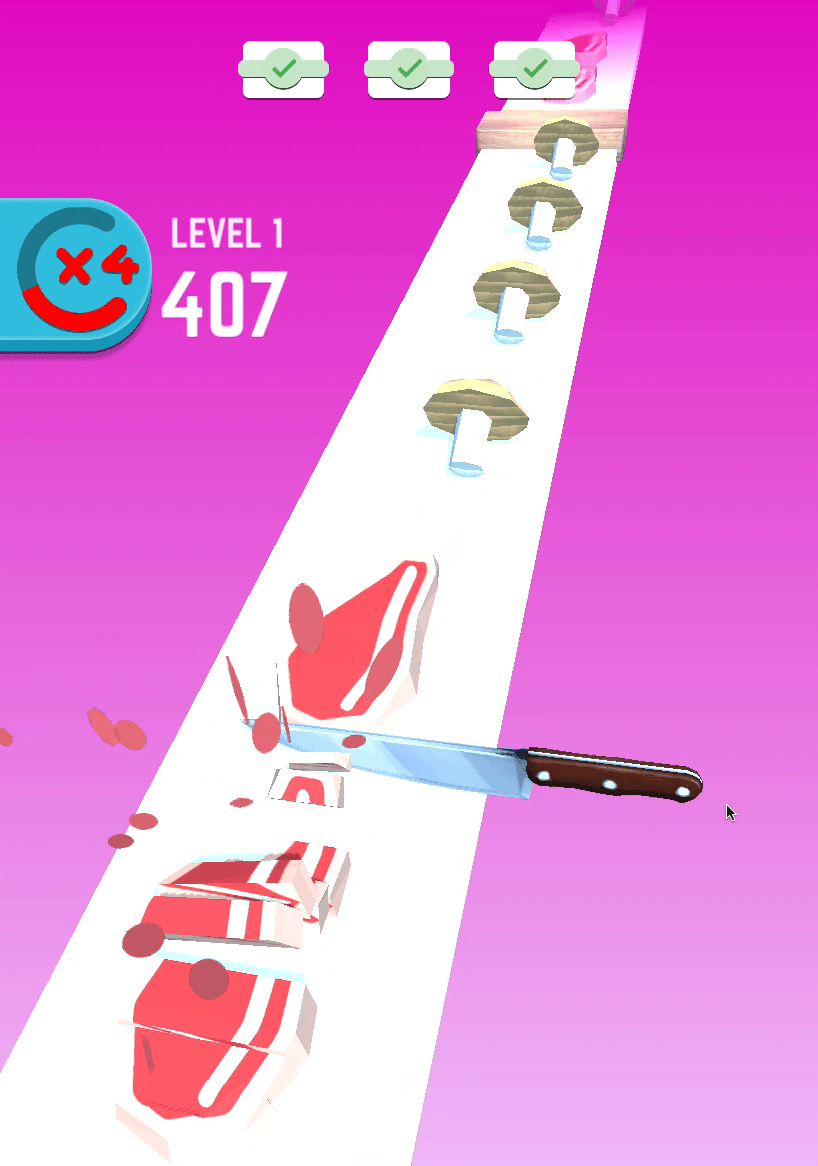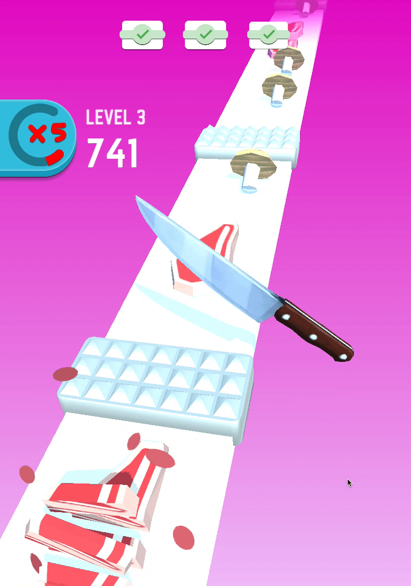 You control the knife, which can be in two positions - active and passive. The essence of the game comes down to the maximum possible number of components that need to be cut. And everything would be fine if there were no stones in the direction of the cutting board, on which there are food for cutting. If during slicing you hit one of these components with a knife, you will instantly lose. For this reason, carefully monitor the speed of movement of the board and calculate your capabilities in order not to hit the stones. Set records and show your friends your results. Turn the game into a competitive element among acquaintances. Check which of them can achieve the best results.