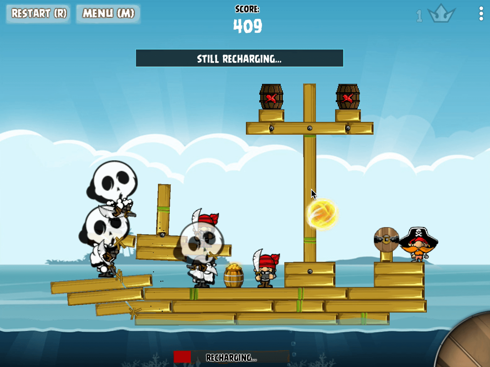 Joga-se num campo estático onde vários objectos são colocados. Entre estes objectos, encontrará piratas que deverá destruir. No entanto, a dificuldade do jogo reside no facto de só se poder disparar o canhão contra vários objectos, e não contra os próprios piratas. É necessário atingir vários objectos de tal forma que todos os piratas estejam debaixo dos escombros.